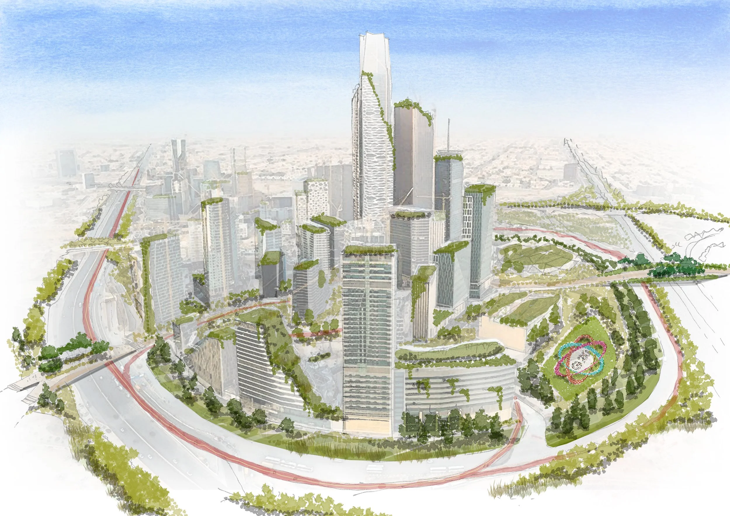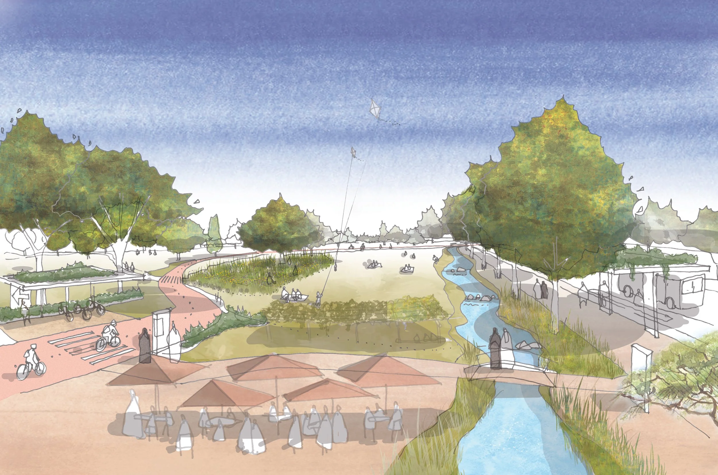 Four design principles drive the concept design for the Green Riyadh Vision: Sustainability, Integration, Connectivity and Functionality.