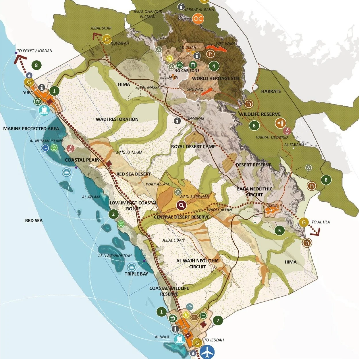 The Reserve, covering an area of 21,000km2 contains an extraordinarily diverse range of landscape typologies, including volcanoes, harrats (volcanic lava field), the Hejaz mountains, remote deserts, wadis, coastal landscapes along the Tihamah, and the largely unspoilt and sparsely populated Red Sea Coast. Unlike other Reserves worldwide, its defining characteristic is diversity rather than overall coherence. In addition, there are a wealth of cultural and heritage assets within the Reserve that should be protected.