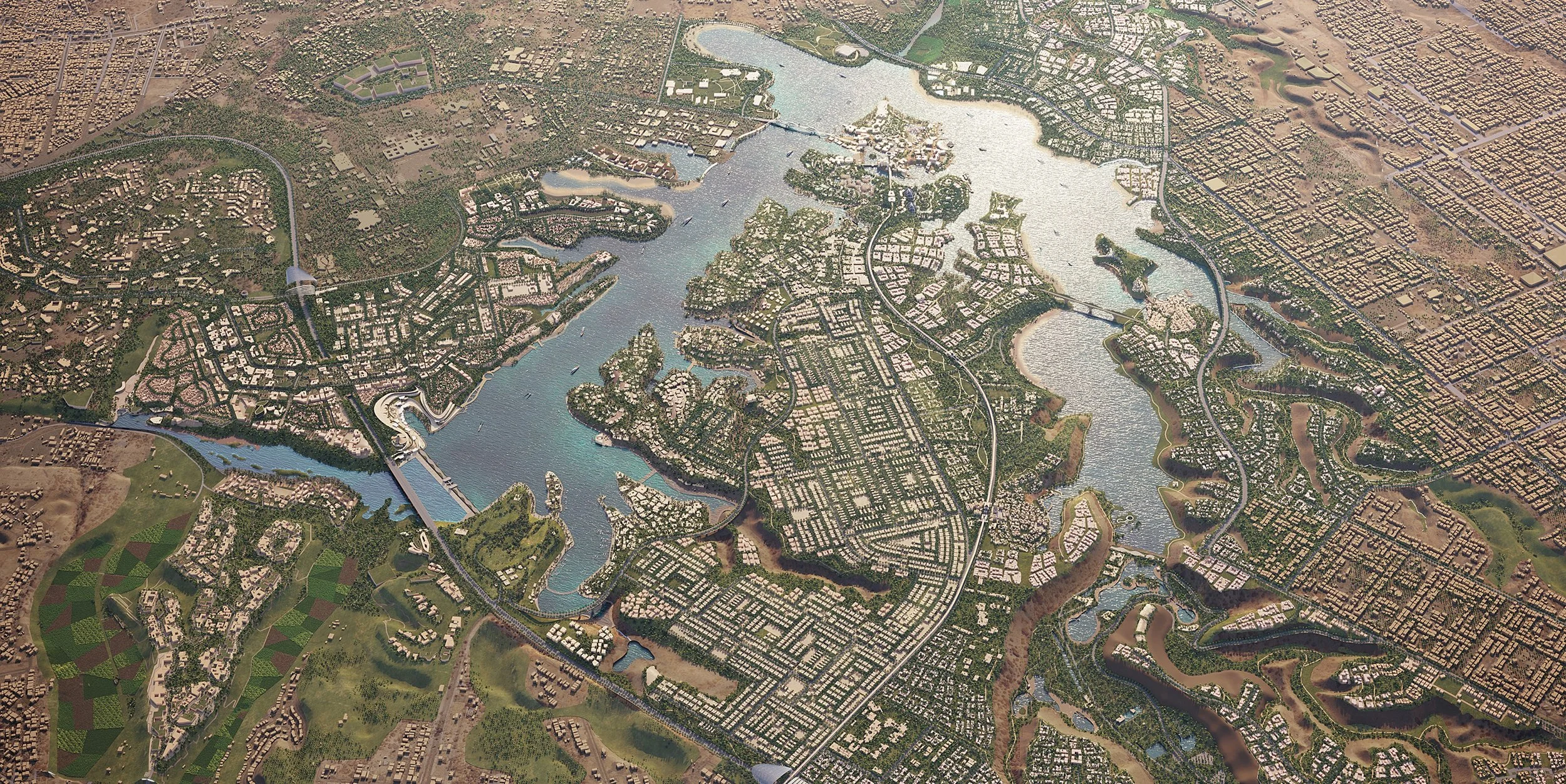 Prize winning entry in a limited competition to consider the expansion of Riyadh’s Diplomatic Quarter and the introduction of a 7.5 km2 lake into wadis Hanifah and Laban.