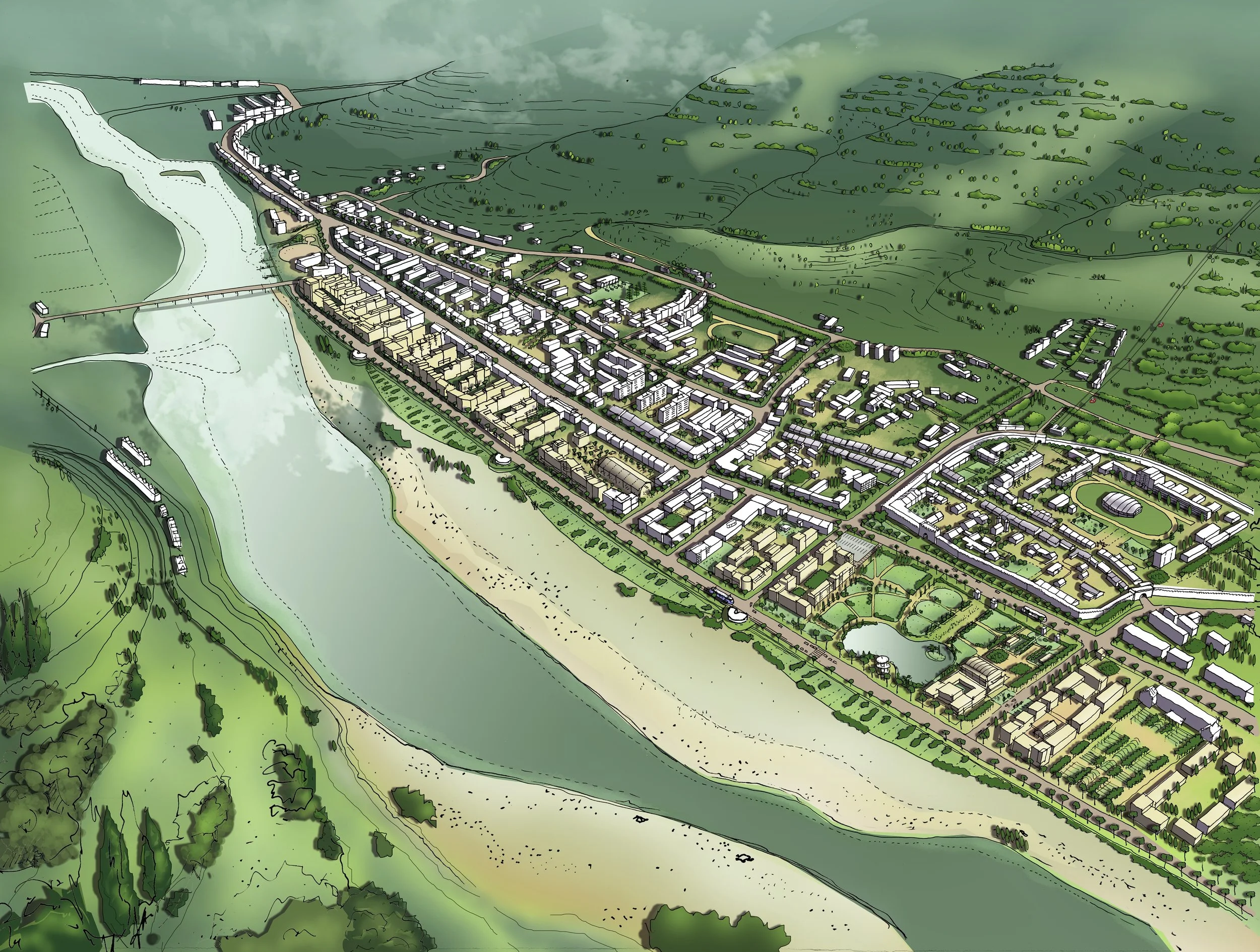 The Team, in collaboration with the University of Cardiff were commissioned by Shiyan Government to produce initial proposals for the Shiyan Han River Eco- Economic Zone Eco Town Development Plan. Dangjiangkou is the central core water resource of ‘Diverting south water to the north project’ which needs to protect water quality and improve eco protection.