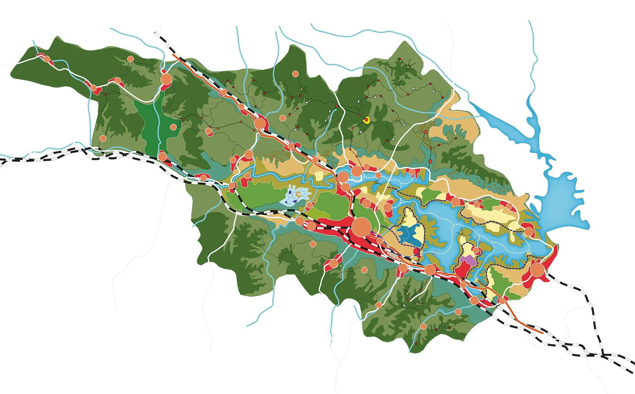 The Han River Eco-Economic Belt lies within the heart of a region in the northern part of Hubei Province which has seen a significant change in recent years as a direct result of the gradual filling of the lake system within the Han River catchment basin. This has resulted in a major new landscape feature which presents the region with both challenges and new opportunities as the process of rising water levls is planned to continue for approximately 10 years.